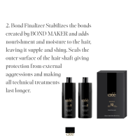 2 Bond Finalizer Stabilizes the bonds created by BOND MAKER and adds nourishment and moisture to the hair, leaving it supple and shiny. Seals the outer surface of the hair shaft giving protection from external aggressions and making all technical treatments last longer.